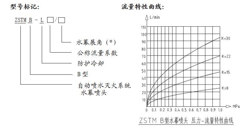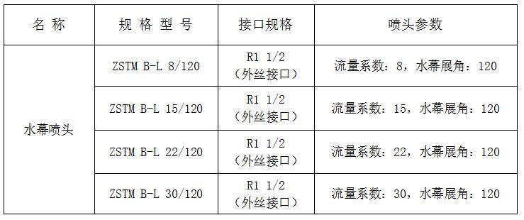 工作原理:ZSTM B系列單出口型水幕噴頭在一定水壓下,將流入的水迅速形成扇形水幕,按照一定的水幕展角均勻噴灑到被保護對象上,達到冷卻、降溫的目的。