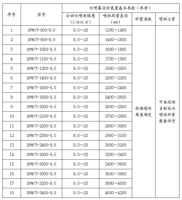 1、煉塔水噴霧消防冷卻裝置選用ZSTW B型水霧噴頭(也可根據用戶要求選擇)