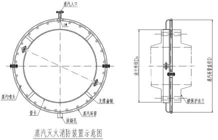 ●工作原理:消防蒸汽通過(guò)蒸汽消防環(huán)管上的小孔或蒸汽噴頭,噴射足夠強(qiáng)度的蒸汽降低空氣中氧含量,稀釋有毒氣體泄漏濃度,從而阻止燃燒,達(dá)到滅火